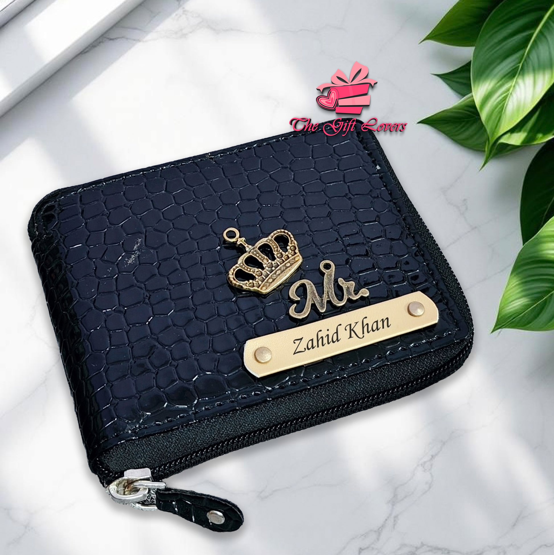 Personalized Glossy Croc Leather Zip Wallet Unisex Edition