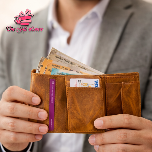 Designed for modern men, this wallet offers multiple card slots, spacious cash compartments, and a slim profile for comfortable daily use. The custom engraved name plate adds a unique and meaningful touch, making it more than just a wallet — it's a personal statement.
